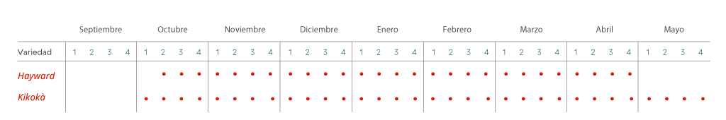 Pionero en el cultivo y distribución de Kiwi Hayward, de pulpa verde, desde el 1984.