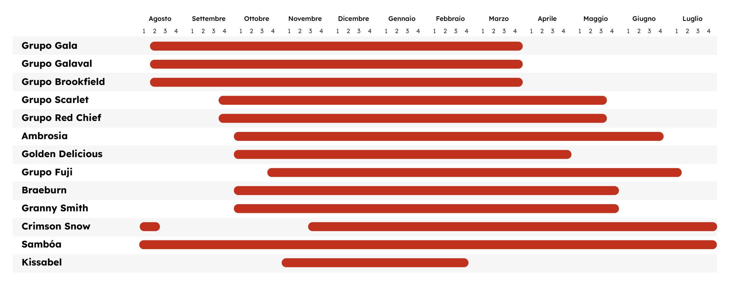 Crimson è una mela a club, i cui diritti di produzione sono in esclusiva per 30 anni ai 4 partner licenziatari del Club.